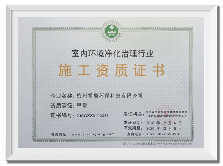 室內環境凈化行業施工資質證書